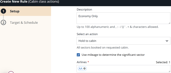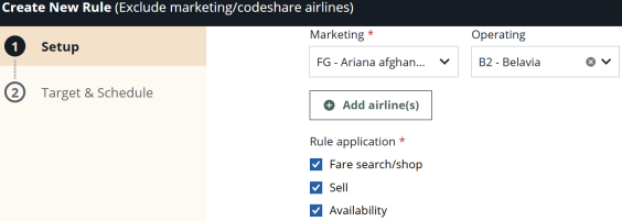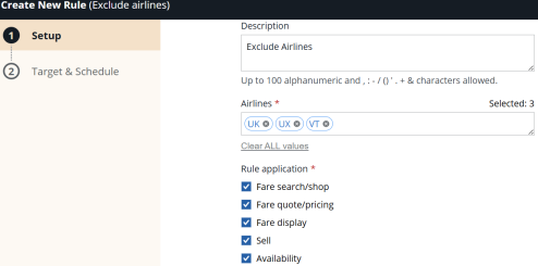 Note: Each rule has individual limits for the number of airlines the rule supports. See Airline List for more information.