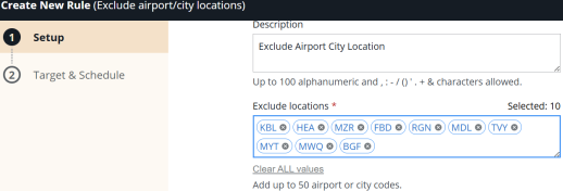 Create Exclude airport/city locations (typeID 59) rule.