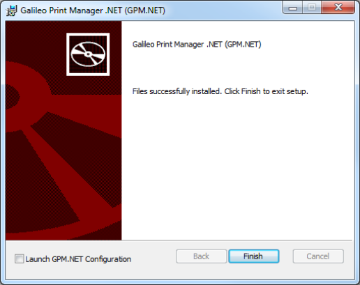 - If you want to configure Galileo Print Manager.net immediately after exiting setup, select Launch GPM.NET Configuration.