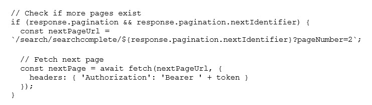 Retrieves additional pages when search results exceed one page. The identifier comes from the pagination object in the initial response.