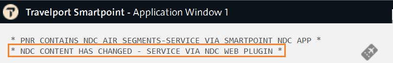 For Flight Search in Smartpoint Desktop, when an NDC booking that has a schedule change is retrieved, the booking file header displays the following if the passive host booking file has not synchronized yet with the NDC airline booking. The N icon in the booking file will still be green at this point, and the new schedule change details will not be updated in the host PNR yet.