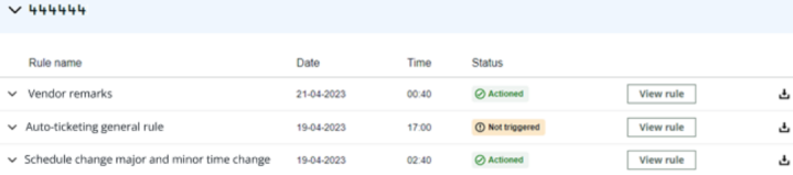 A rule that has run as expected displays a status of Actioned next to the relevant Matched actions.