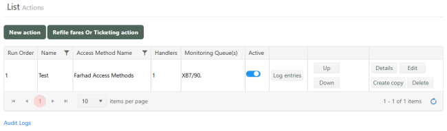 Any changes (additions/modifications/deletes) to monitoring queues, criteria and handlers of actions are captured as part of the audit log for actions. Note additions, modifications and deletions of handlers including custom handlers will be available in the audit log.