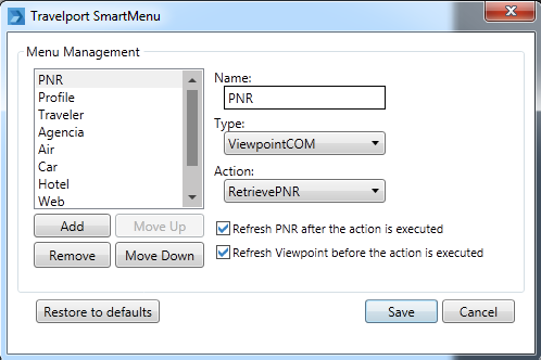 If you are still having trouble with toolbar, you can delete the configuration file located at C:\Users\nnnnn\AppData\Roaming\Travelport\Common\QuickMenu.xml (where nnnnn is your username in Windows).