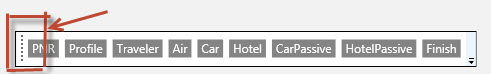 To change the default position of the toolbar, click and drag the grip control which can be found on the left side of the toolbar. The toolbar can be moved anywhere within the Terminal Window or PNR Viewer Window, and the position is remembered the next time Smartpoint is launched.