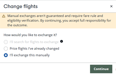 Traditional (GDS) bookings can be manually exchanged using a graphical interface if they meet the conditions for manual exchange.