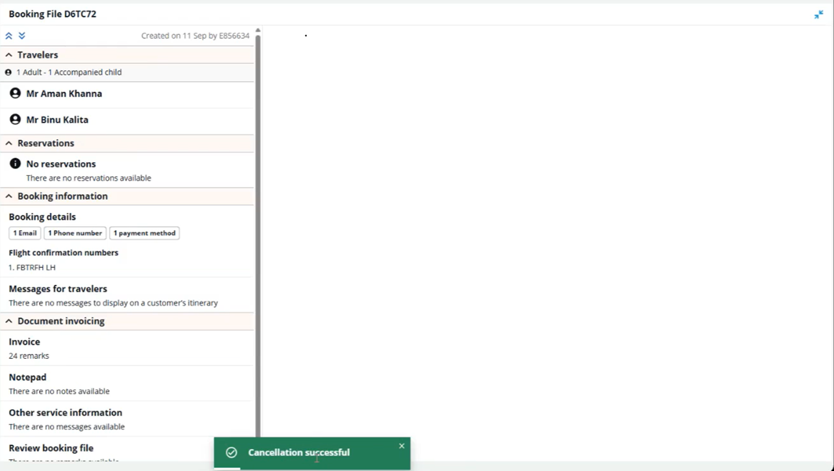 Important note: If all the segments in an NDC booking are canceled by the airline, no segments are added back to the booking. No banner is added, and the booking file is placed on Queue 23 for processing. Most airlines require the agent to contact the airline customer care center to assist the traveler.