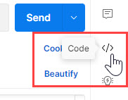 To see the full code for request click the Code icon </> below and to the right of the Send button.