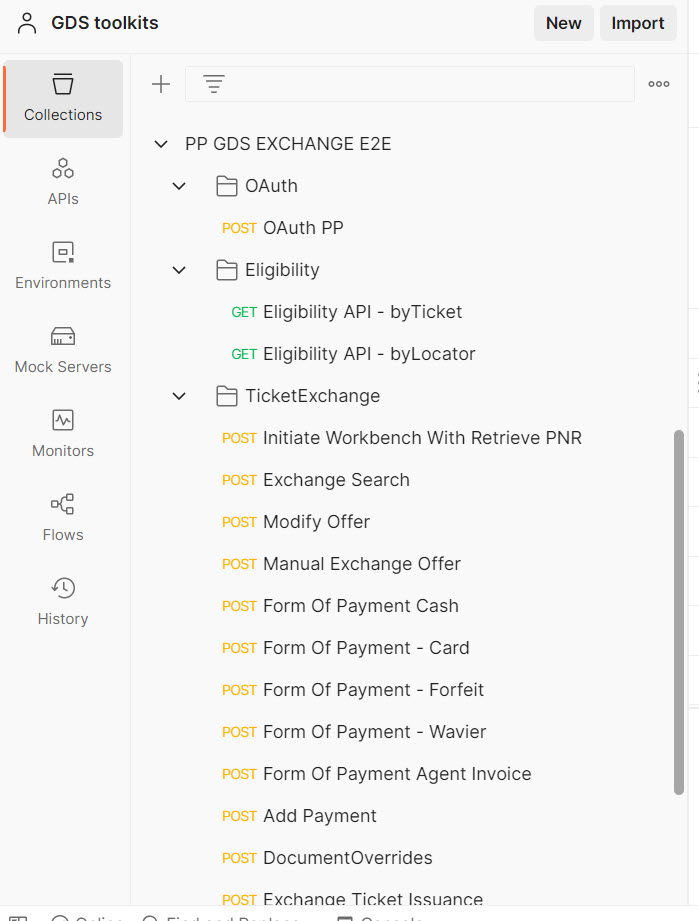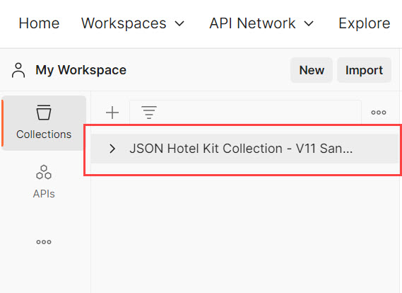 Postman collections are included in the JSON API developer toolkits, available for download for the Air, Hotel, and Pay APIs. You can enter the credentials given to you at API provisioning to run through sample transactions.