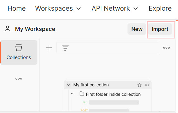 In the dialog that opens, either drag the Postman collection file to the window or select it from the window. The imported collection appears in your workspace.