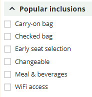 Select from the list of popular preferences to restrict flight results to those flights that offer these amenities.