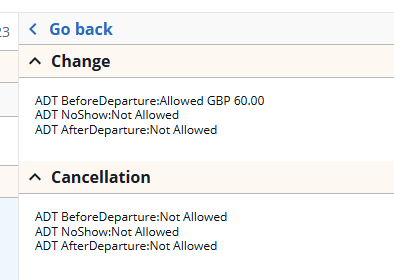 • An amber exclamation point indicates there are conditions for a change or refund.
