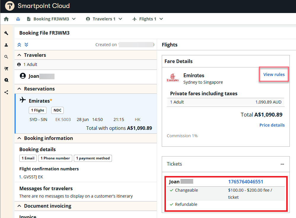 For traditional bookings, you can also add or edit some ticketing details prior to issuing the ticket.