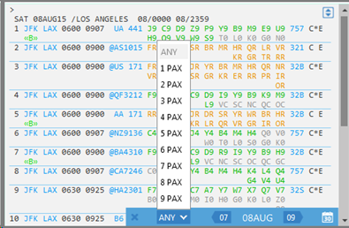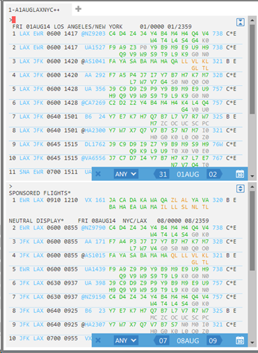 A[]10OCTSANMSP+DL Renvoie à la fois un affichage des tarifs et une disponibilité dans la même demande. DL est l’opérateur privilégié. Voir Règles tarifaires pour plus d’informations sur l’affichage des règles à partir de l’écran. |