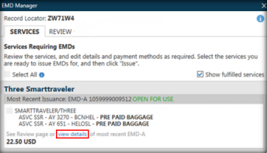 Pourboire! Pour afficher les détails d’un EMD, vous pouvez également cliquer sur le lien Afficher les détails de l’EMD dans l’onglet Services .