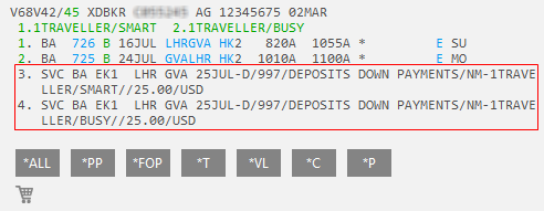 EMD Manager prend également en charge les mêmes fonctionnalités que les formats de terminal suivants pour Travelport+ (1G) et Apollo (1V) :