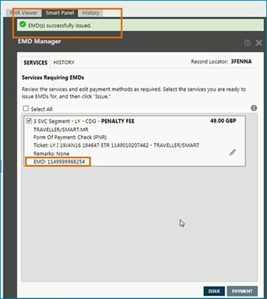 - Cliquez sur EMDL dans le fichier de réservation PNR pour afficher les segments EMD.