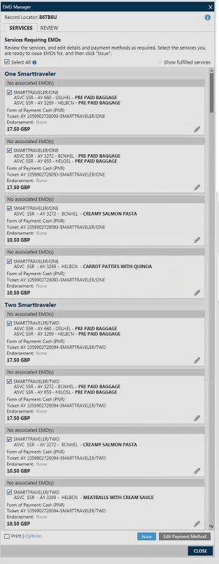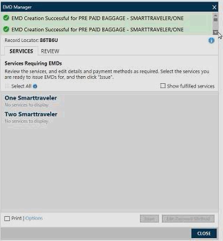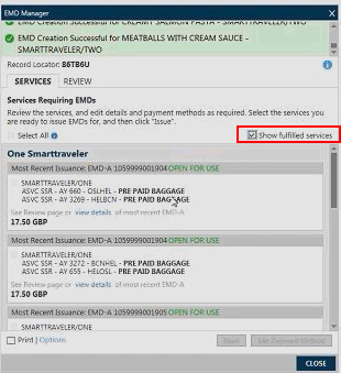 Lorsque tous les segments de service sont créés pour le fichier PNR/Réservation, ouvrez le Gestionnaire EMD. Vous pouvez soit :