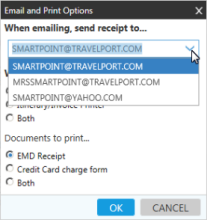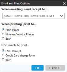 - Dans Documents à imprimer..., sélectionnez votre option pour les reçus EMD et/ou les formulaires de paiement par carte de crédit.