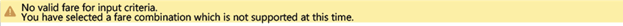 Si des tarifs non cumulables sont sélectionnés, tels qu’un tarif privé pour un vol aller et un tarif public pour un vol retour, un message d’avertissement s’affiche :