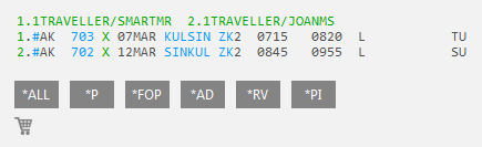 - Pour afficher la réservation dans le système du transporteur de paiement direct, entrez Z*R/CXX , où XX est le code de la compagnie aérienne.