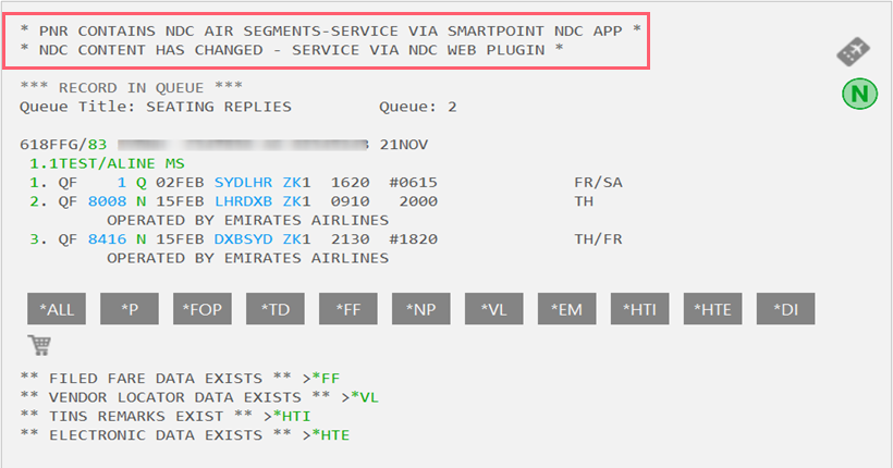 * PNR CONTIENT LE SERVICE NDC AIR SEGMENTS VIA L’APPLICATION SMARTPOINT NDC * -