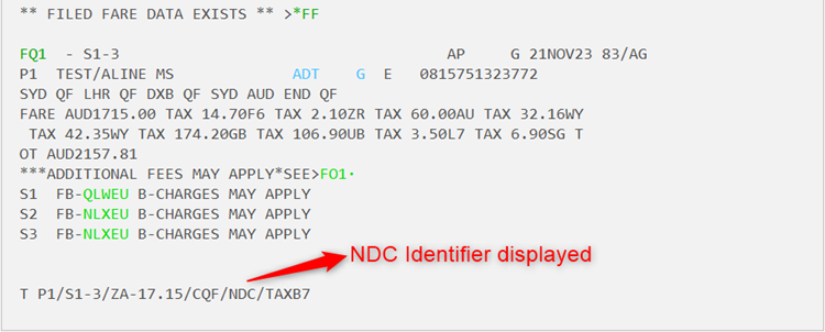 Dans Smartpoint 11.3, un identificateur NDC (/NDC) a été ajouté à la ligne de billetterie du tarif enregistré dans une réponse tarifaire.