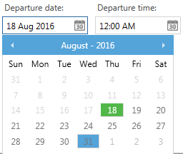 Aller-retour seulement. Dans Heure de retour, entrez l’heure de départ ou cliquez sur l’icône Calendrier