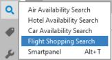 Dans Flex Windows, l’écran de recherche s’affiche sous la forme d’un panneau latéral dans l’écran Travelport Smartpoint. Vous pouvez choisir d’épingler le panneau latéral afin de pouvoir afficher simultanément la fenêtre PNR.