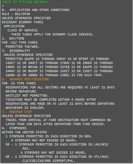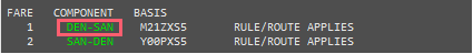 Invite à afficher le texte des règles. Vous pouvez ensuite entrer FN1/ALL pour voir le texte complet des règles pour le premier composant tarifaire ou cliquer.