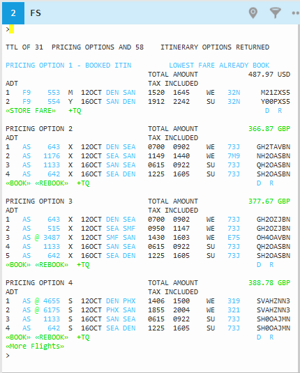 Pourboire! Dans certaines situations, un problème connu peut entraîner l’échec de certains segments réservés dans l’option de tarification 1. (Travelport+ uniquement)Plus d’informations
