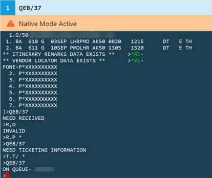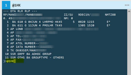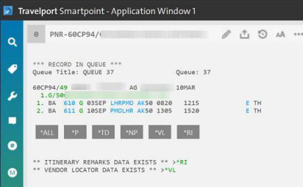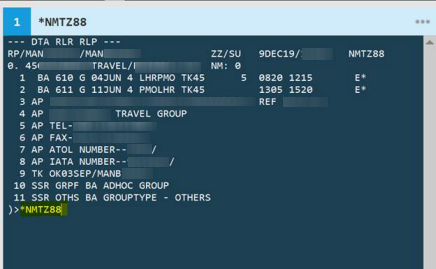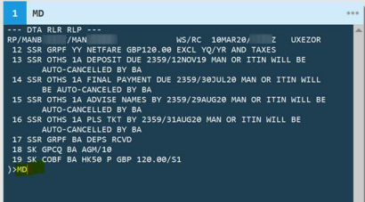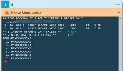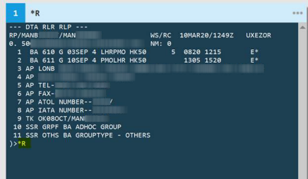 Entrez *R pour réafficher le fichier de réservation en mode drop-through, qui est un mode natif qui interagit directement sans le système Travelport+ (1G) sans passer par Smartpoint.