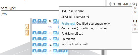 - Passez la souris sur un siège pour voir s’il a le statut Préféré : Passagers qualifiés uniquement .