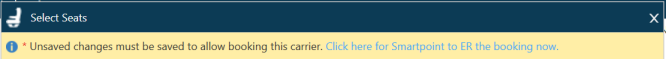- Pour afficher le plan de salle, vous devez enregistrer le PNR/Fichier de réservation. Un message avec un lien s’affiche pour mettre fin à la transaction (ER) le fichier PNR/Réservation.