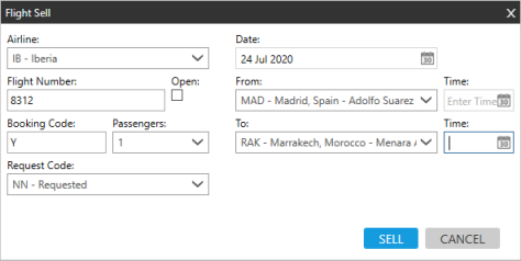 - Ouvrez l’écran de vente de vols.