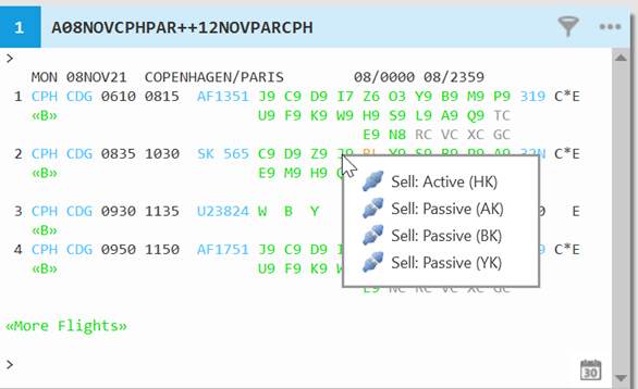 Vous pouvez vendre des segments passifs à partir de l’écran des résultats de disponibilité aérienne .