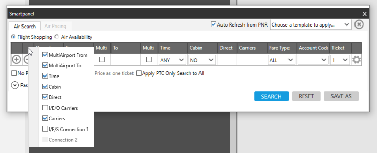 Vous pouvez personnaliser Smartpanel en sélectionnant les colonnes qui s’affichent pour chaque écran Smartpanel.