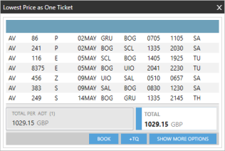 - Optionnel. Une fenêtre contextuelle (Flex Windows) ou un nouvel onglet (Classic Windows) s’affiche avec l’option de vol la moins chère de l’ensemble de l’itinéraire.
