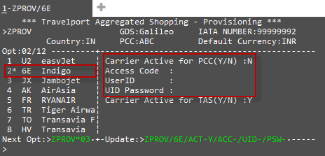 Le PCC à utiliser pour le paiement de l’agence doit être provisionné avec le code de compte de l’agence dans le champ « Code d’accès » de la table ZPROV d’IndiGo (6E).