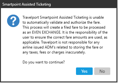 Tout d’abord, la billetterie assistée tente de revalider le billet. Si la revalidation est impossible en raison des types de modifications ou des politiques de la compagnie aérienne, la billetterie assistée prépare des masques de mise à jour des devis et des modificateurs de billets (TMU) avec toutes les données requises pour les échanges involontaires.