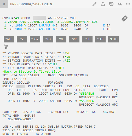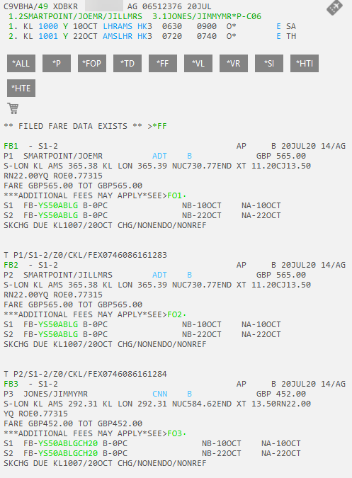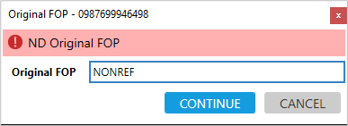Smartpoint 11.0 et versions ultérieures. S’il n’y a pas de mode de paiement (FOP) dans le tarif d’origine, ou si une mise à jour du FOP est requise, la fenêtre FOP d’origine s’affiche.