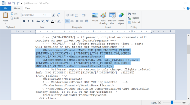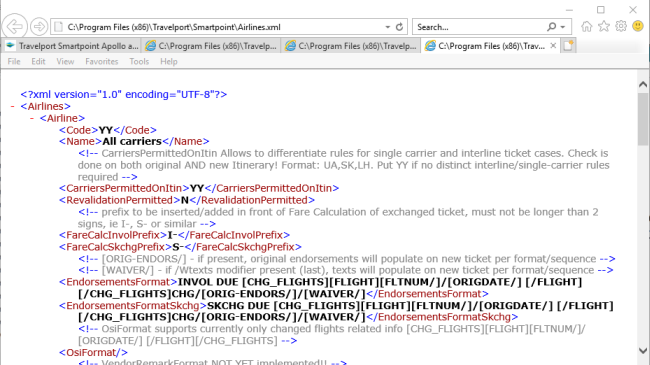 Pourboire! Vous pouvez double-cliquer sur Airlines.xml pour ouvrir le fichier dans votre navigateur par défaut. Bien que vous ne puissiez pas modifier le fichier à partir du navigateur, il peut être plus facile à lire. -