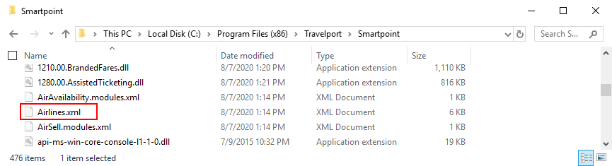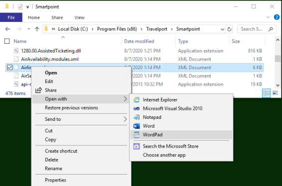 Cliquez avec le bouton droit de la souris sur le fichier Airlines.xml d’origine dans le dossier Smartpoint.