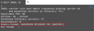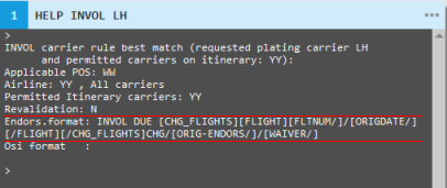 Dans Smartpoint, entrez HELP INVOL XX, où XX est la compagnie aérienne, pour afficher le format de cette compagnie aérienne pour les approbations.