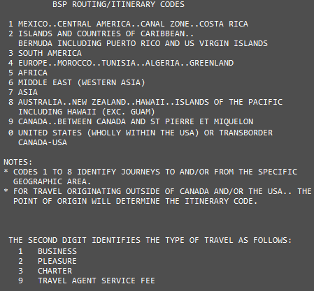 Les agences au Canada sont tenues d’ajouter un code d’itinéraire lors de l’émission ou du remboursement d’un billet d’avion. Pour les billets d’avion, le code d’itinéraire est ajouté sous forme de document (DI). Ligne.