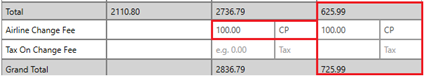 Le cas échéant. Dans la ligne Taxe sur les frais de modification , ajoutez la taxe pour les frais de modification de la compagnie aérienne.