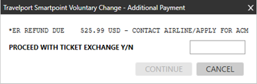 Note: Si vous tapez N, la réémission est annulée. Vous pouvez utiliser les formats Travelport+ (1G) pour réémettre le billet.