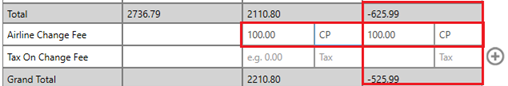 Le cas échéant. Dans la ligne Taxe sur les frais de modification , ajoutez la taxe pour les frais de modification de la compagnie aérienne.
