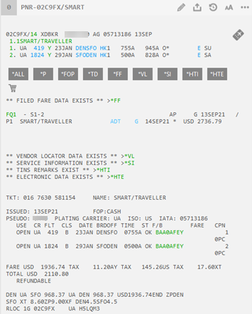Terminez et récupérez (ER) le PNR/Fichier de réservation.