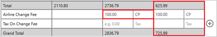 Le cas échéant. Dans la ligne Frais de modification de la compagnie aérienne , ajoutez des frais de modification pour le nouveau tarif enregistré. Dans cet exemple, des frais de changement de compagnie aérienne sont ajoutés en tant que taxe avec add collect.